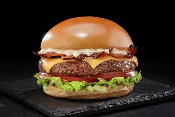 Pão brioche, 1 carne de 170g, queijo, bacon, maionese de provolone e salada.